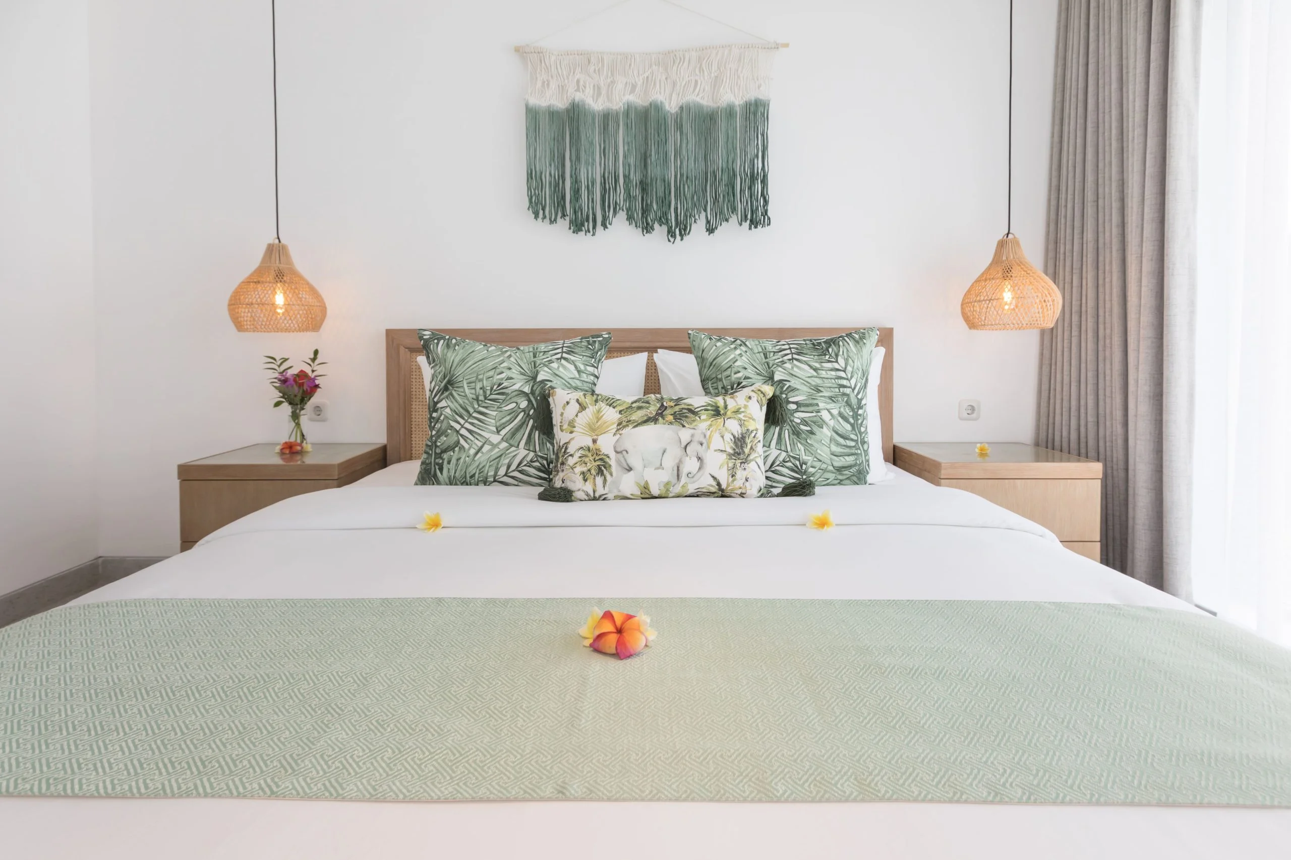 Villa Daun Canggu 3 is a perfect hideout with a Stylist Modern concept. Located in the middle of Buduk Village, Mengwi , one of the most popular tourist towns in Bali and yet easy access to Local Restaurants, 4 km from Pererenan Beach, a famous beach with great and powerful waves that make it as the favorite surf spot in and only 12 km from the most famous tourist destination, Tanah Lot Temple. Suitable for all interests and ages from extended families to groups of friends. Villa Daun Canggu 3 by Nagisa Bali offers A private pool, spacious Six bedrooms with 6 bathrooms equipped with shower and bathtub on master room, kitchen set with a dishwasher and a fridge, spacious and cozy living room with nature overlooking, dining room and free parking.