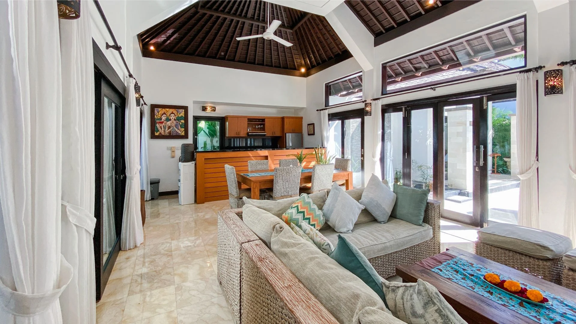 An exclusive 3-bedroom villa located in the tranquil Benoa Bay area. Immerse yourself in the quiet and peaceful ambiance of this tropical oasis, where you can unwind and relax while enjoying the gentle ocean breeze. Whether you’re looking for a romantic getaway or a family vacation, Villa Cempaka offers a luxurious and serene retreat that will make you feel right at homep