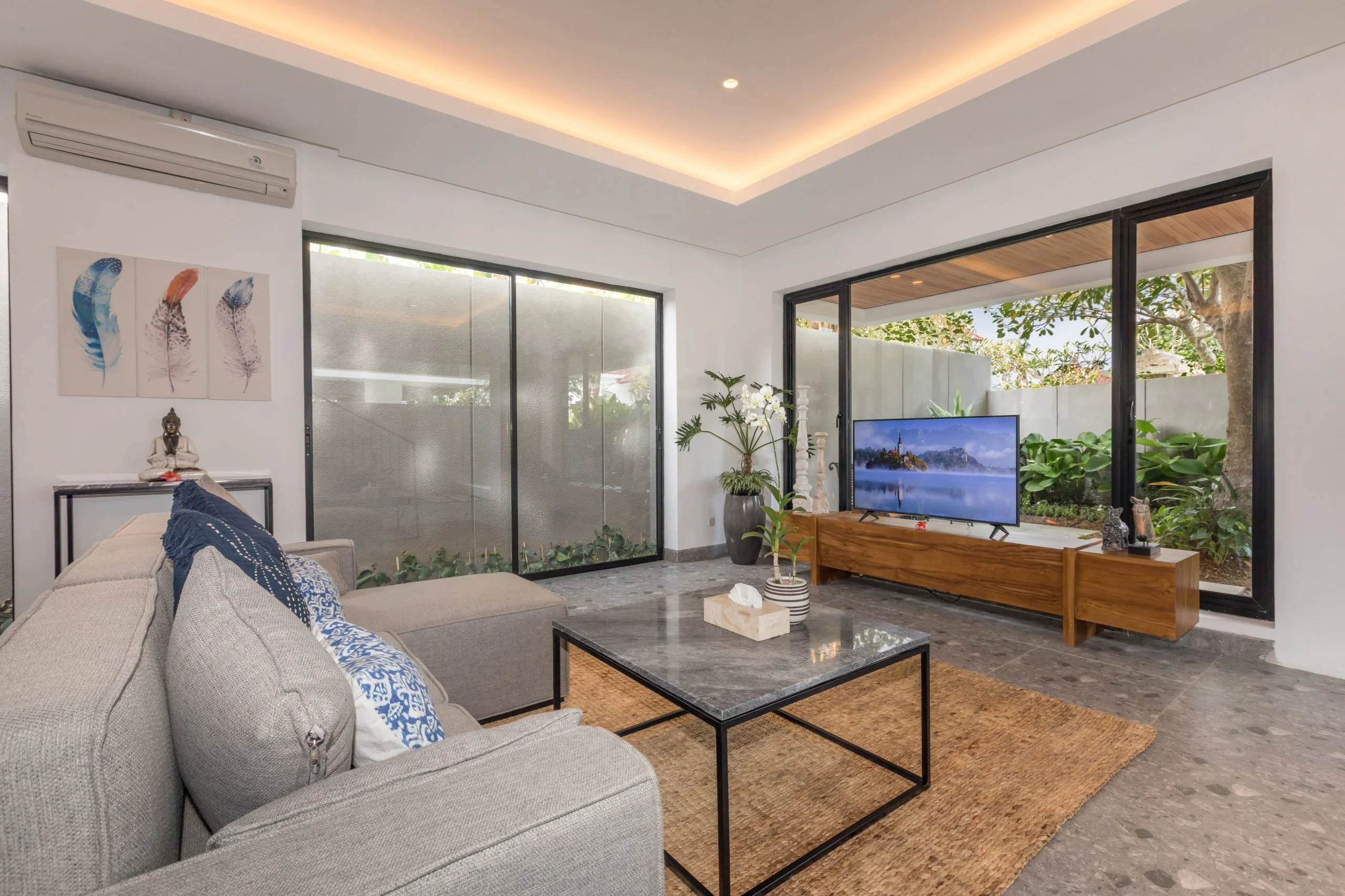 Villa Daun Canggu 3 is a perfect hideout with a Stylist Modern concept. Located in the middle of Buduk Village, Mengwi , one of the most popular tourist towns in Bali and yet easy access to Local Restaurants, 4 km from Pererenan Beach, a famous beach with great and powerful waves that make it as the favorite surf spot in and only 12 km from the most famous tourist destination, Tanah Lot Temple. Suitable for all interests and ages from extended families to groups of friends. Villa Daun Canggu 3 by Nagisa Bali offers A private pool, spacious Six bedrooms with 6 bathrooms equipped with shower and bathtub on master room, kitchen set with a dishwasher and a fridge, spacious and cozy living room with nature overlooking, dining room and free parking.